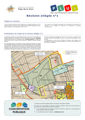 Présentation de l'objet de la Révision allégée n°1 du Plan Local d'Urbanisme intercommunal et concertation publique
