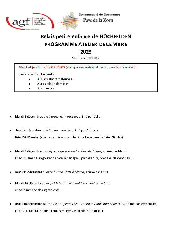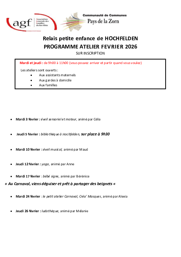 Pour la qualité de l’accueil, pensez à vous inscrire : Sandrine MULLER – 03 88 02 27 59 ou 06 76 22 51 94