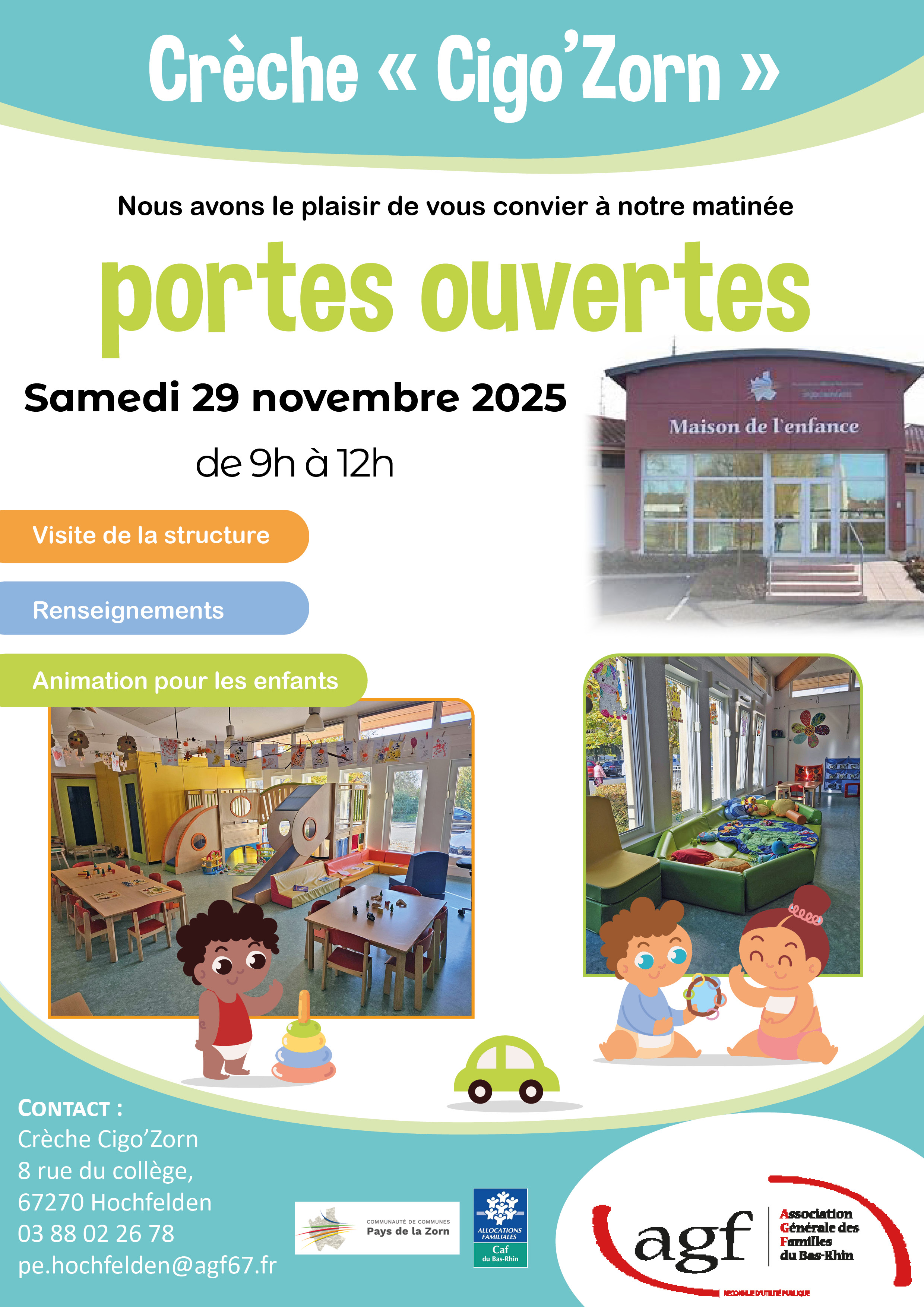 L'Association Générale des Familles organise une matinée Portes Ouvertes à la crèche Cigo'Zorn à Hochfelden