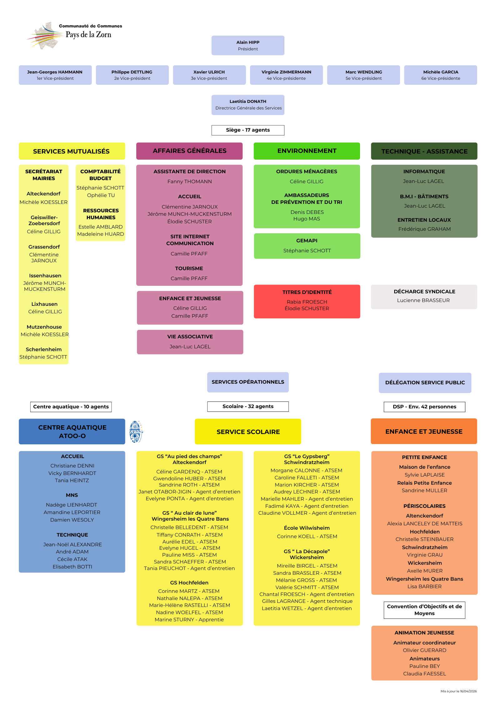- 17 agents répartis entre les différents services (accueil général, service Administratif, service Environnement, service Finances, service Ressources Humaines...) assurent le fonctionnement quotidien. Ils assurent également les services mutualisés en direction des communes adhérentes.
